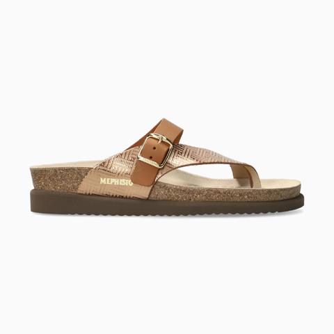 MEPHISTO HELEN MIX | Women's Cork Sandals. This marvellously lightweight ladies' toe post sandal, with its relaxed look, promotes a perfect sensation of well-being. The unique SOFT-AIR technology, integrated in the cork midsole, guarantees an effortless walk. The AIR-RELAX technology respects the anatomy of the foot with a cork sole to prevent fallen arches. Its strap is adjustable thanks to its buckle fastening.